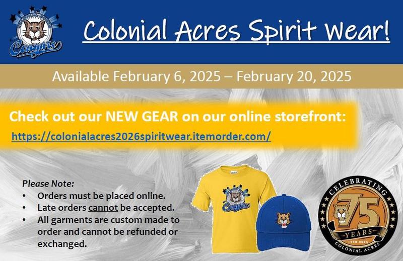 Colonial Acres Spirit Wer Available February 6, 2025 – February 20, 2025 Online! See flyer for details